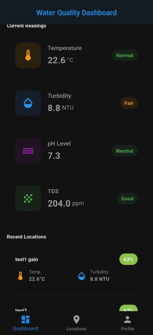 By combining IoT, cloud computing, and geospatial visualization, Aqua Sense transforms raw environmental data into meaningful insights. The platform empowers stakeholders with real-time visibility into water quality trends, supporting proactive decision-making and sustainable resource management.