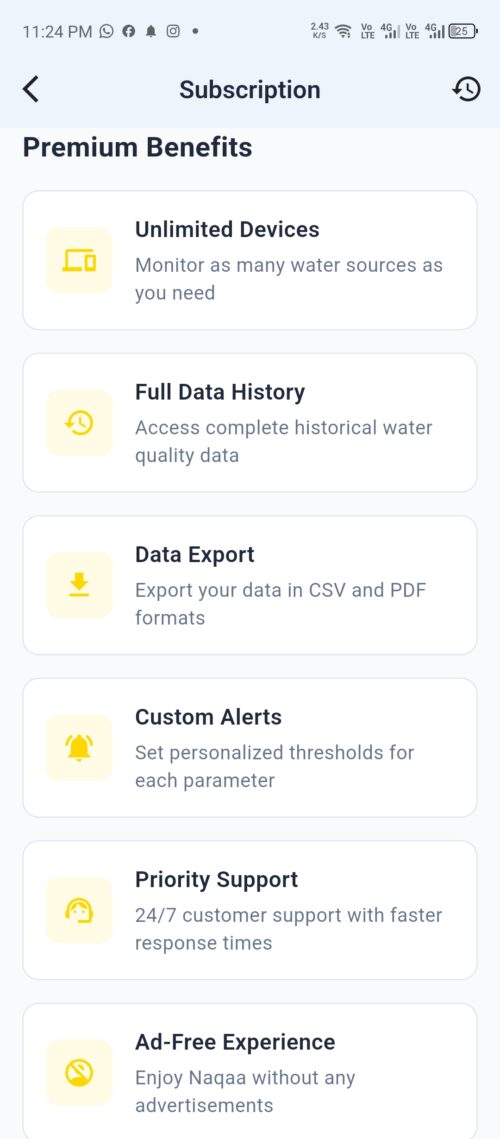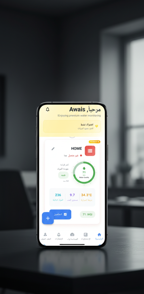 Naqaa is a cross-platform mobile application designed to monitor water quality in real time through connected IoT devices. Built for Android and iOS, the app provides users with live insights into water conditions, enabling informed decisions through accurate, sensor-driven data. The platform was developed to support regional requirements, focusing on reliability, scalability, and ease of use for both individual and institutional users.