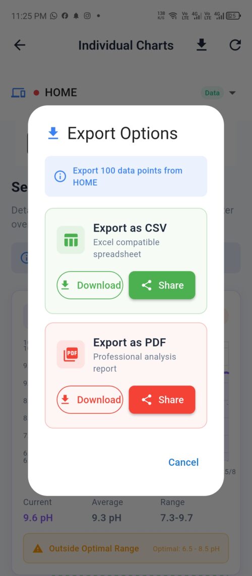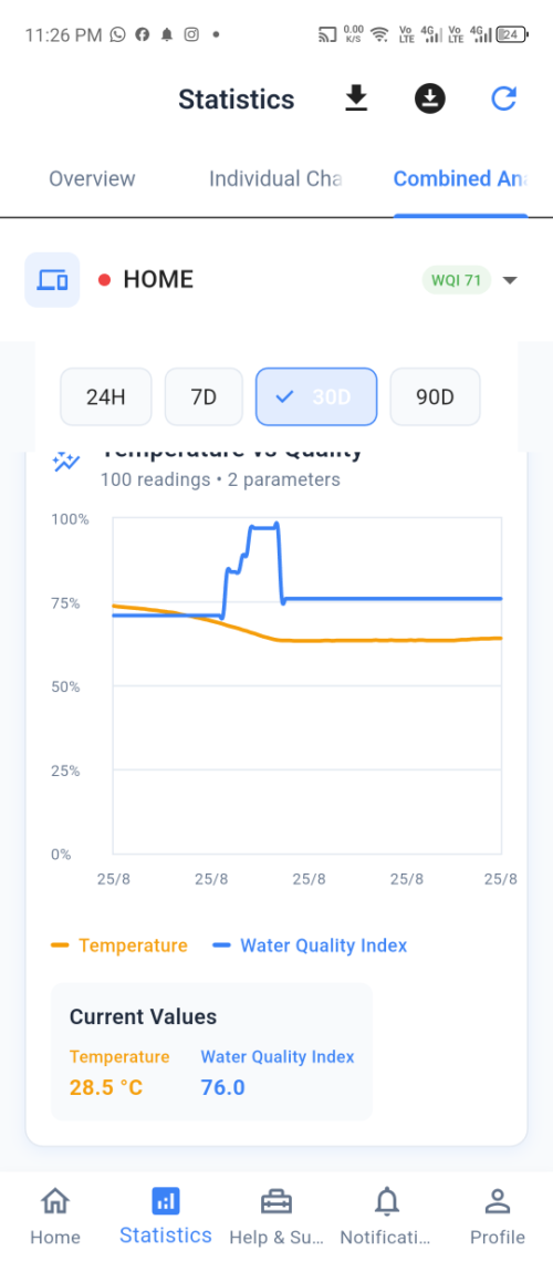 Manual water quality testing is time-consuming, inconsistent, and often inaccessible for continuous monitoring. Existing solutions either lack real-time data synchronization, require complex setups, or fail to provide meaningful analytics for long-term tracking.